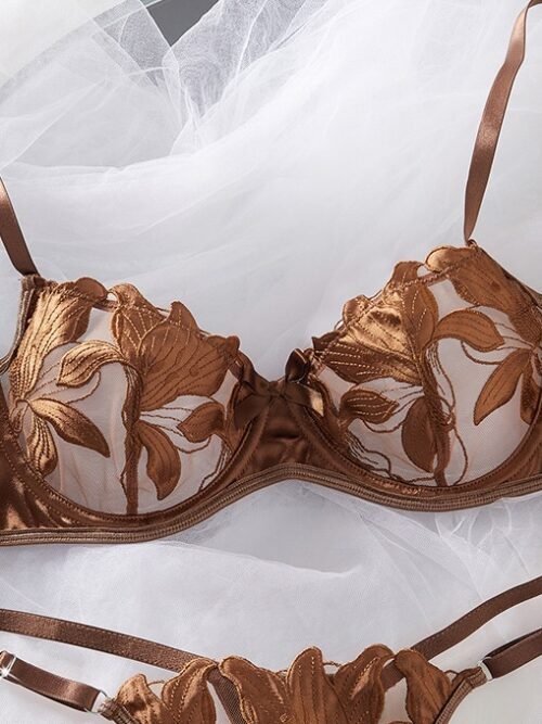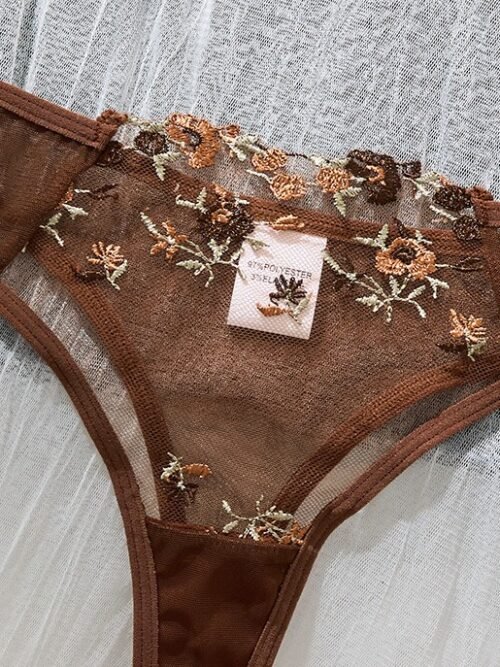 Mocha Bloom Embroidered Lace Lingerie Set – Bra & Thong
