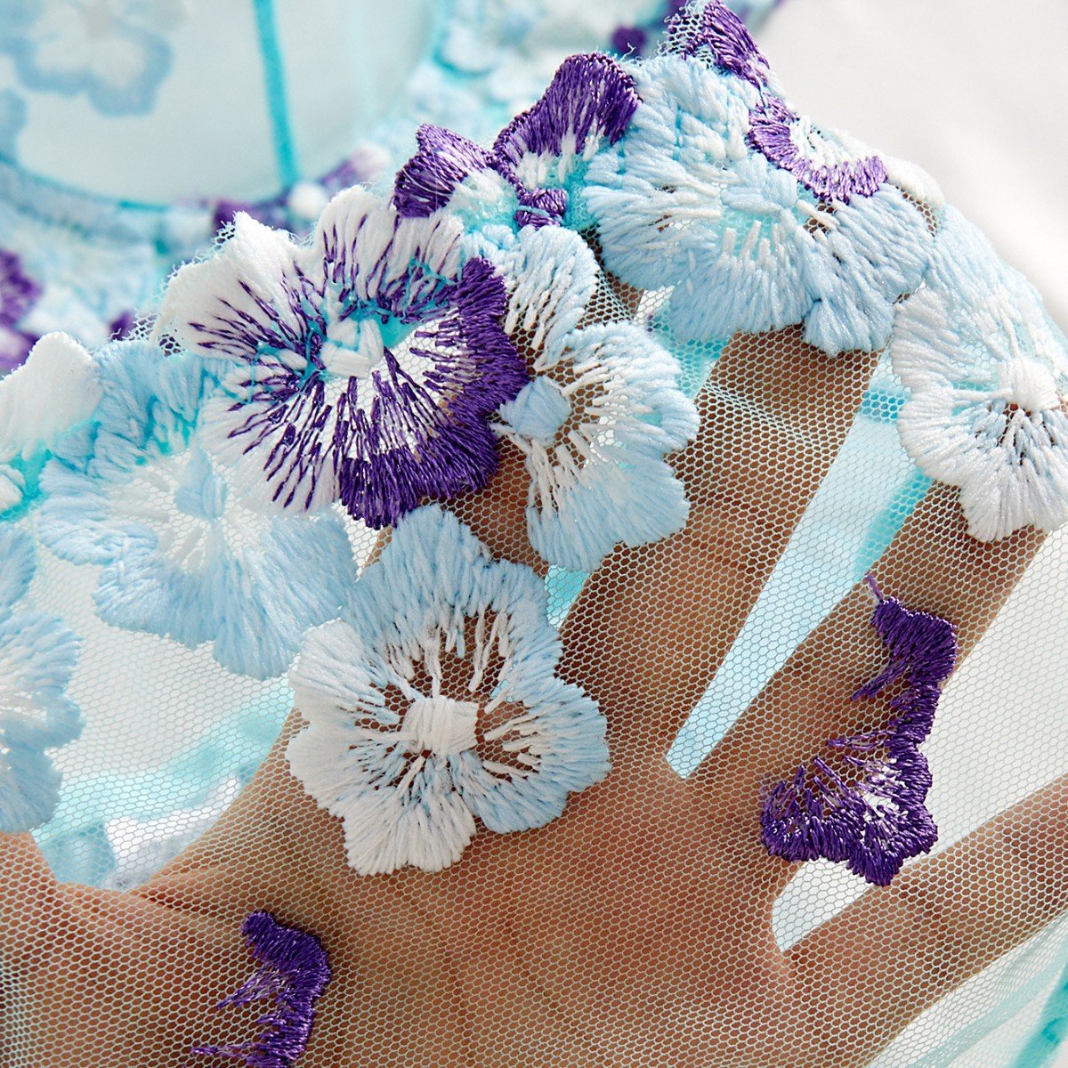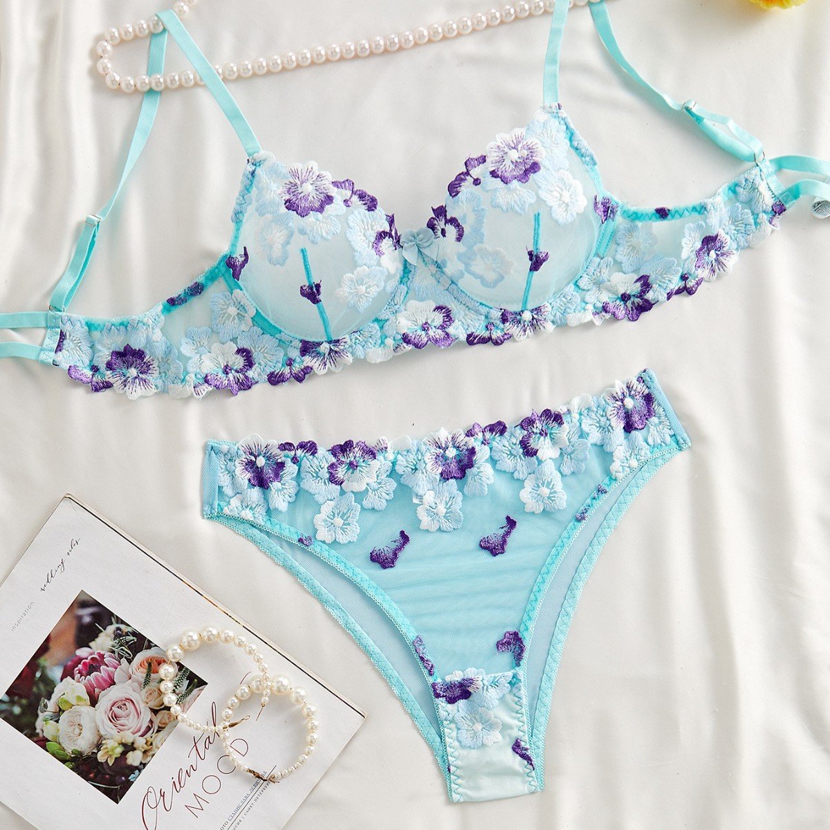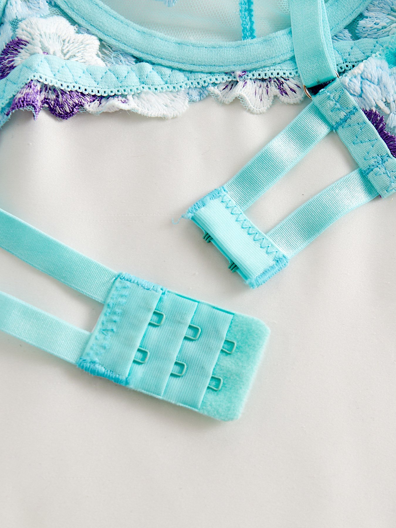 Aqua Bloom Embroidered Sheer Lingerie Set