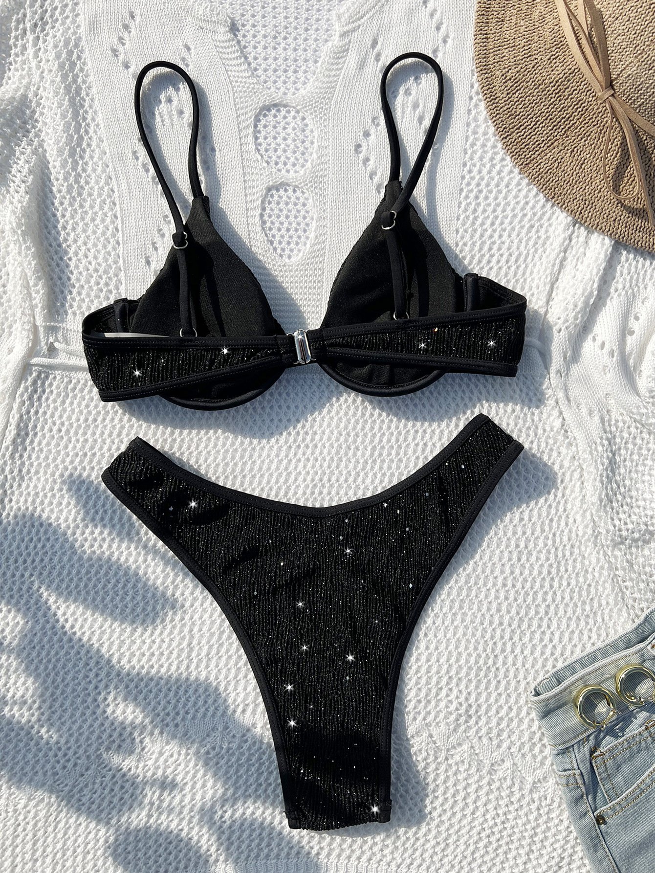 Black Sparkle Padded Lingerie Set with Shimmer Detailing