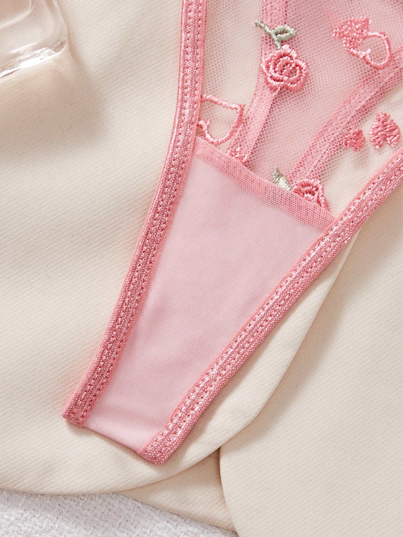Add a soft romantic touch to your collection with our Blush Bloom Embroidered Mesh Lingerie Set. Designed with delicate pink floral embroidery over sheer mesh, this set blends elegance with comfort for a flattering everyday-luxury feel.