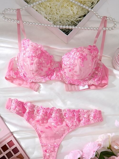 Buttercream Blossom Embroidered Soft Floral Push Up Bra Panty Set