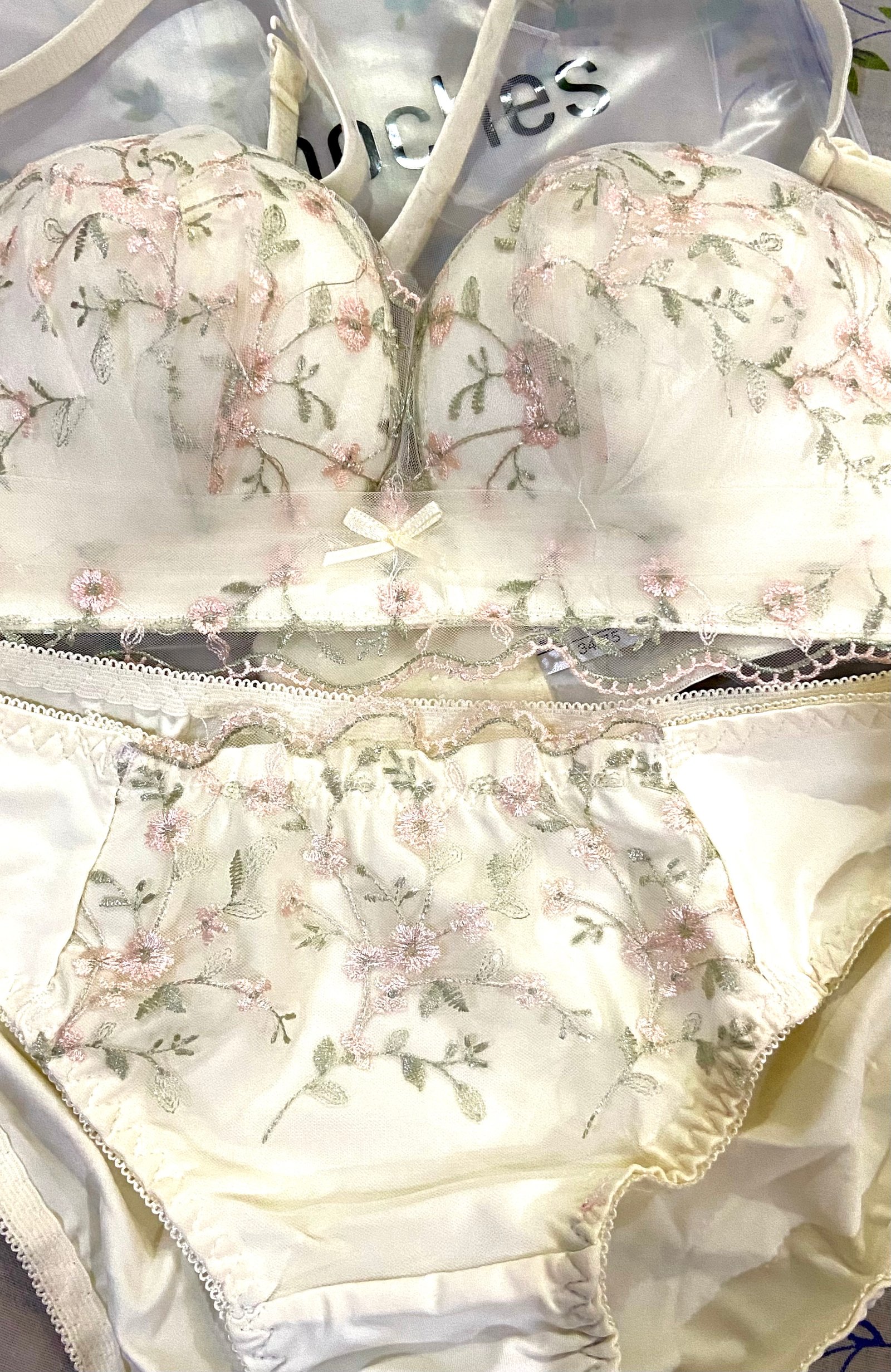 Buttercream Blossom Embroidered Soft Floral Push Up Bra Panty Set