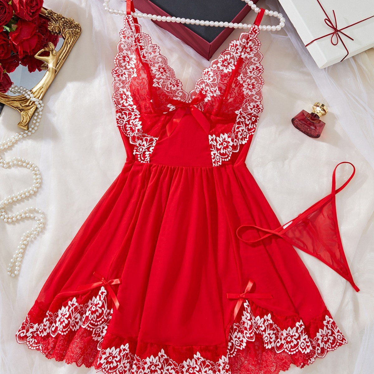 Lace Babydoll & Thong Sexy Sleepwear