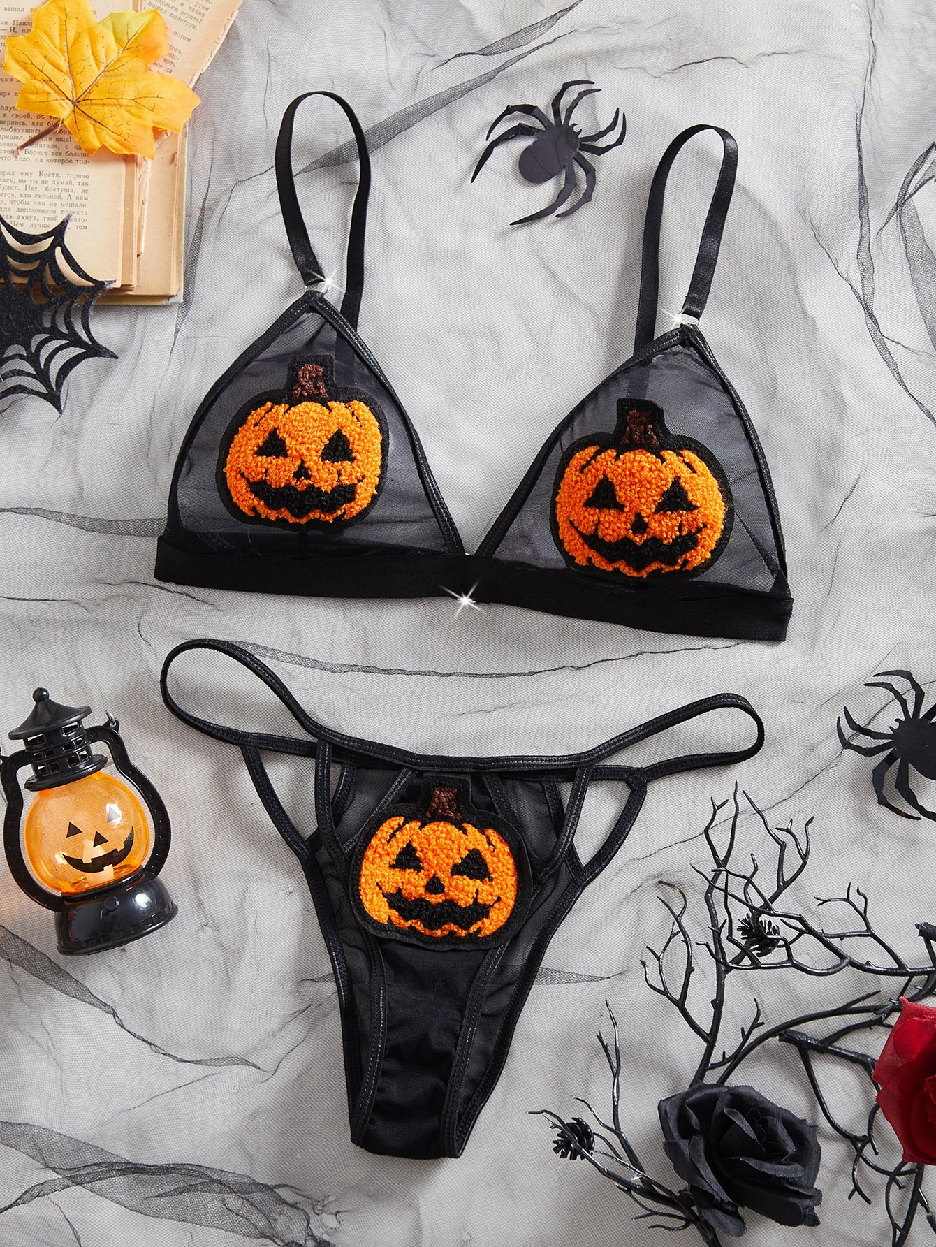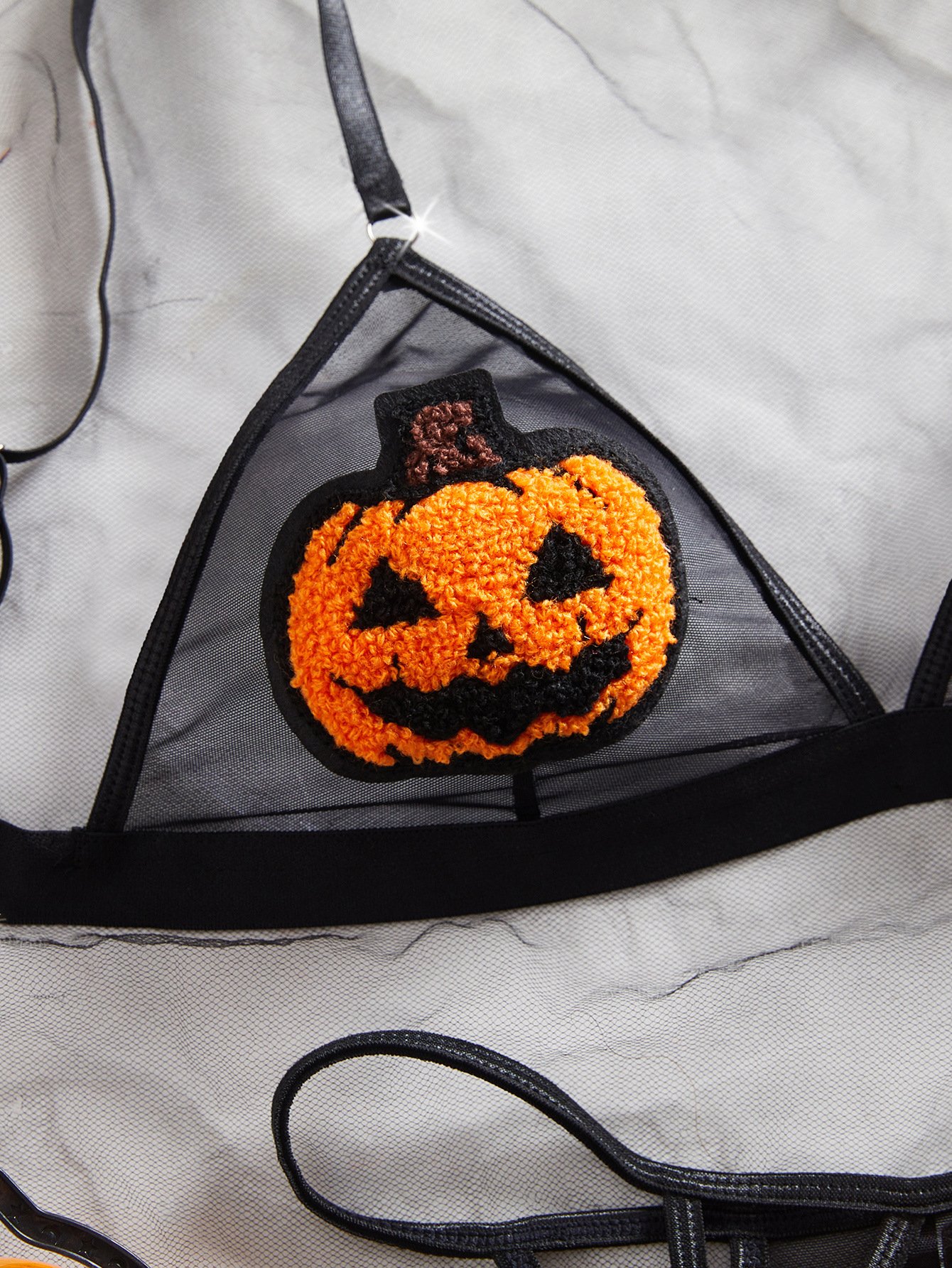 Midnight Pumpkin Mesh Lingerie Set 🎃