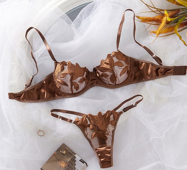 Mocha Bloom Embroidered Lace Lingerie Set – Bra & Thong