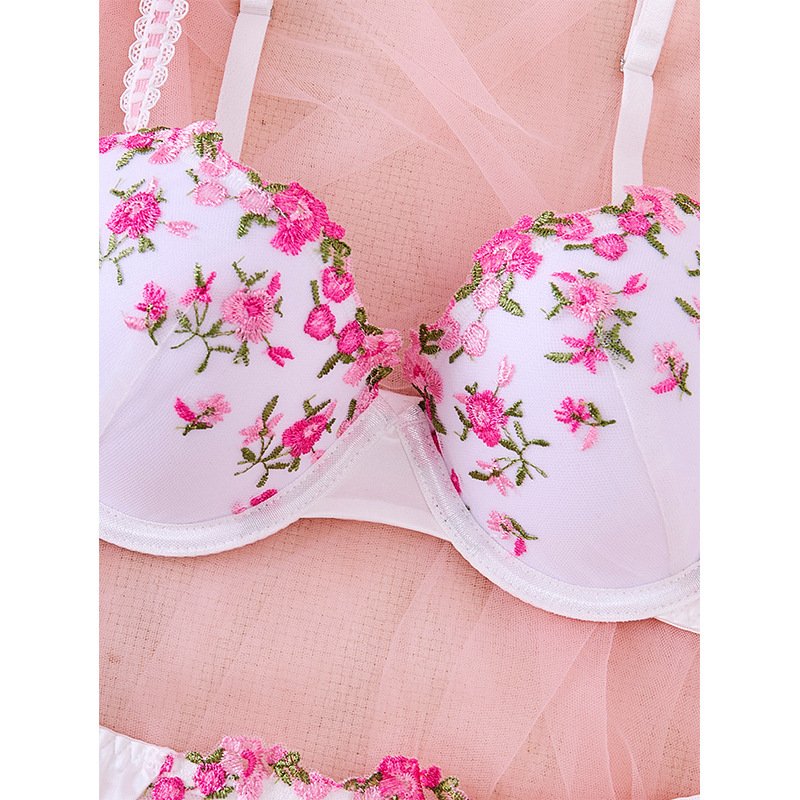Rosy Bloom White Embroidered Padded Bra & Panty Set