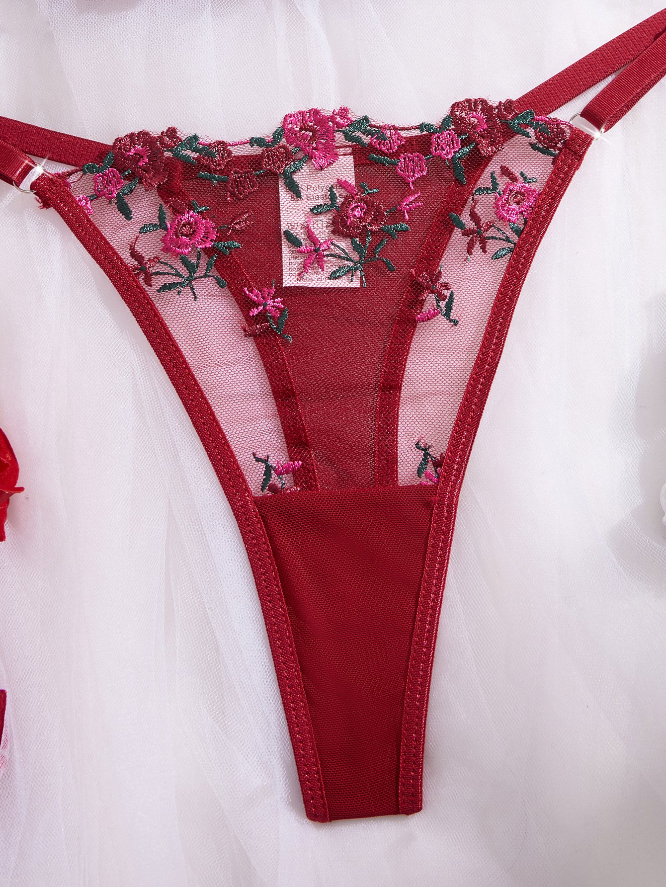 Ruby Blossom Romance Embroidered Strappy Lingerie Ensemble