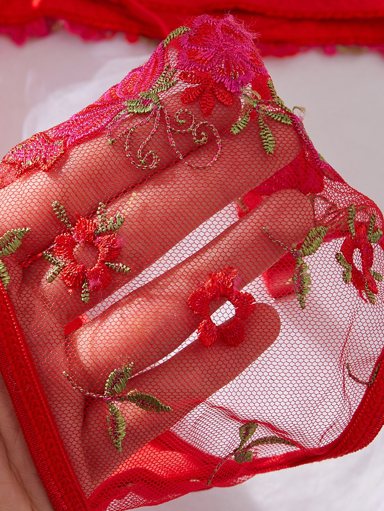 Turn every moment into a romantic statement with the Scarlet Bloom Embroidered Lingerie Set — designed for elegance, confidence, and irresistible charm. This stunning two-piece set blends sheer mesh with delicate floral embroidery for a luxurious, premium look.