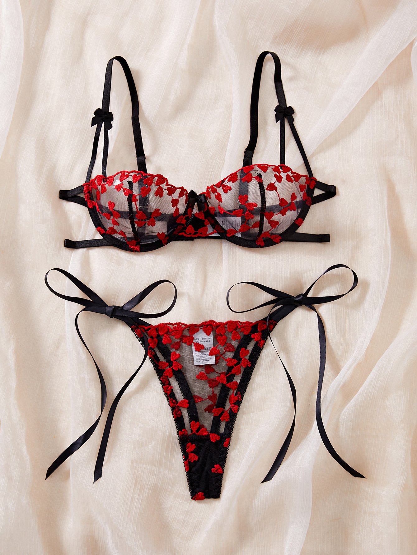 Scarlet Heart Sheer Mesh Lingerie Set
