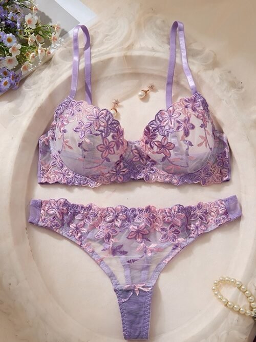Brighten up your wardrobe with the Sunbeam Lace Lingerie Set, featuring delicate yellow floral embroidery on sheer mesh. This cheerful yet sultry set includes a supportive underwired bra and matching thong that radiate confidence and charm—perfect for sunny moods or special nights.